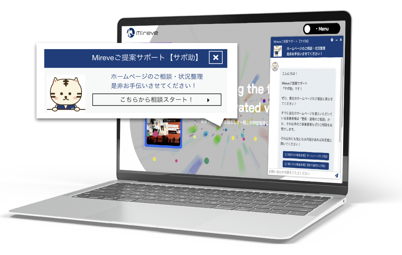 サイト訪問者に対して、会話形式で案内を行い、問い合わせや案内業務を自動化することができます。