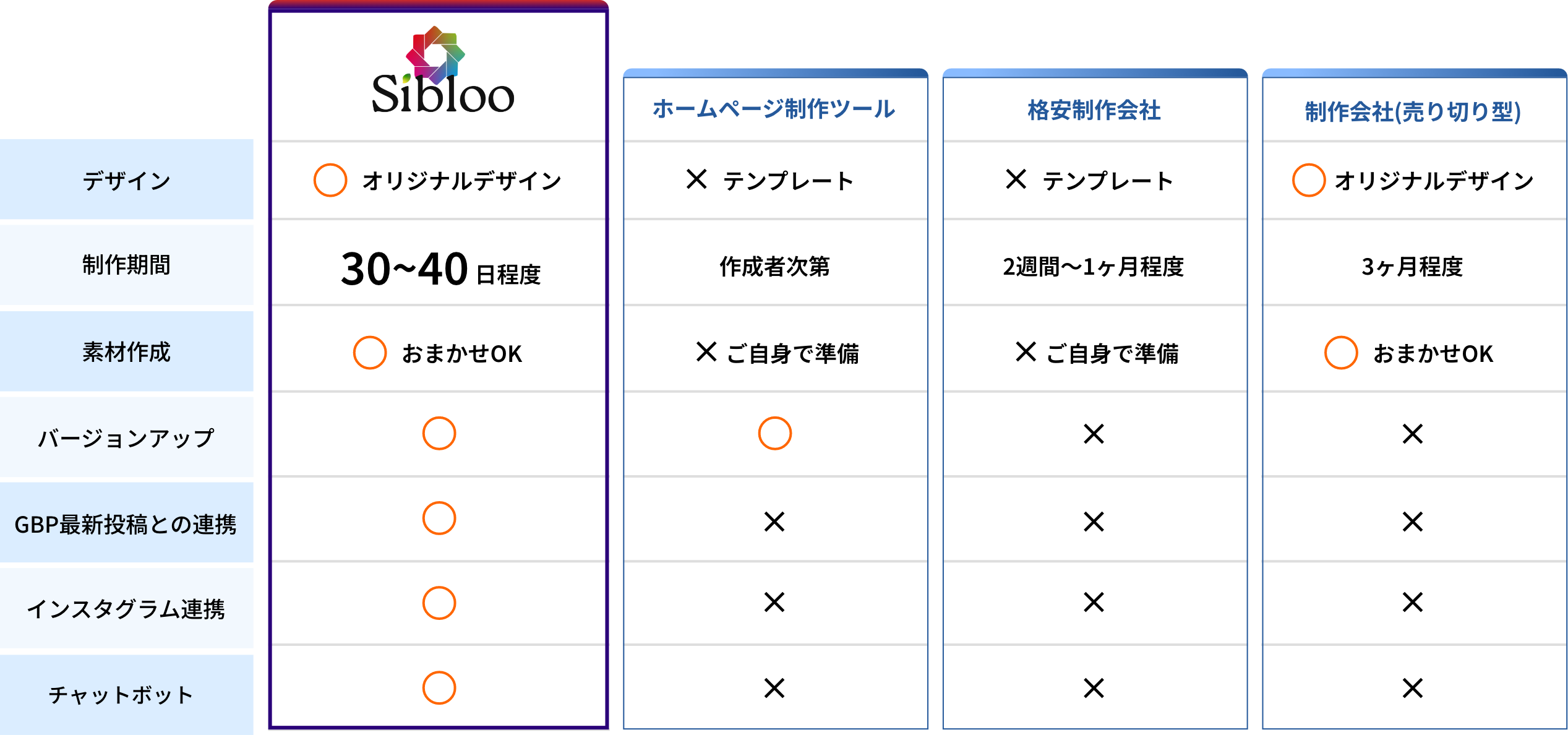 AI による自動文章生成、GBP と HP の投稿自動反映、複数機能を統合できる点が差別化ポイントです。
